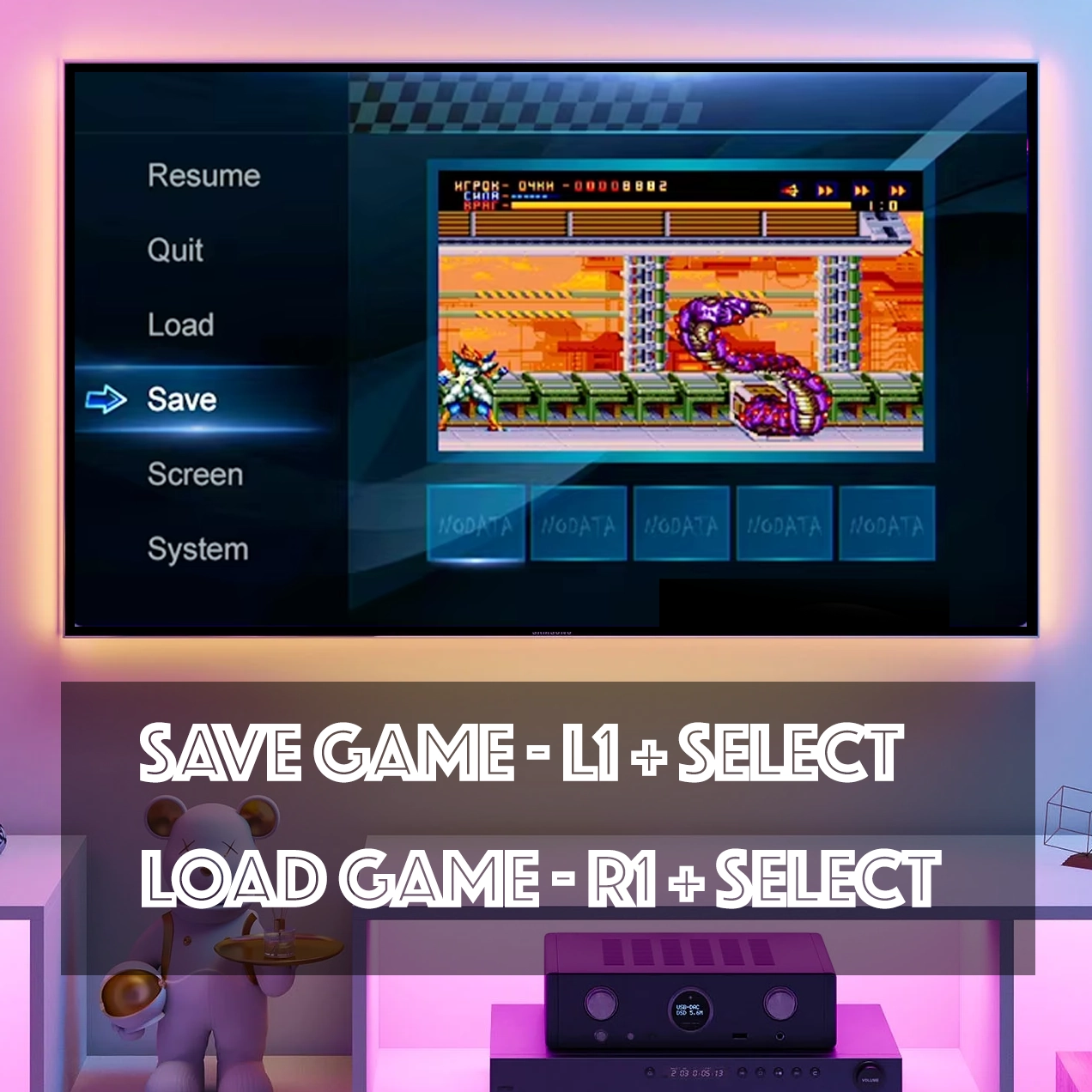 Plug and Play system — connect and play. No complicated setup, no tangled cables — simply plug it in and start playing. Just connect the retro gaming console to your TV’s HDMI port and use the included USB cable to power it via the TV’s USB port. The console turns on automatically with the TV and switches off when the TV is turned off. Simple and convenient.