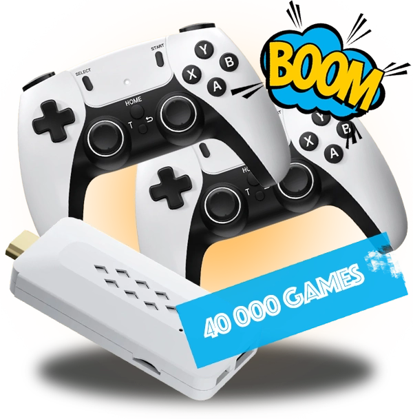 A gaming console with carefully selected and built-in thousands of titles from your childhood. The set includes two modern wireless controllers, making gameplay even more enjoyable and convenient. The console is about the size of a USB flash drive—simply connect it to your TV via HDMI and USB and immerse yourself in the world of nostalgic games. Functional software is installed, featuring a game search function, the ability to mark favorite titles, and clear categorization by console type. The biggest advantage: you never have to start a game from the beginning again. You can save your progress at any time and continue exactly where you left off the next time you play.
