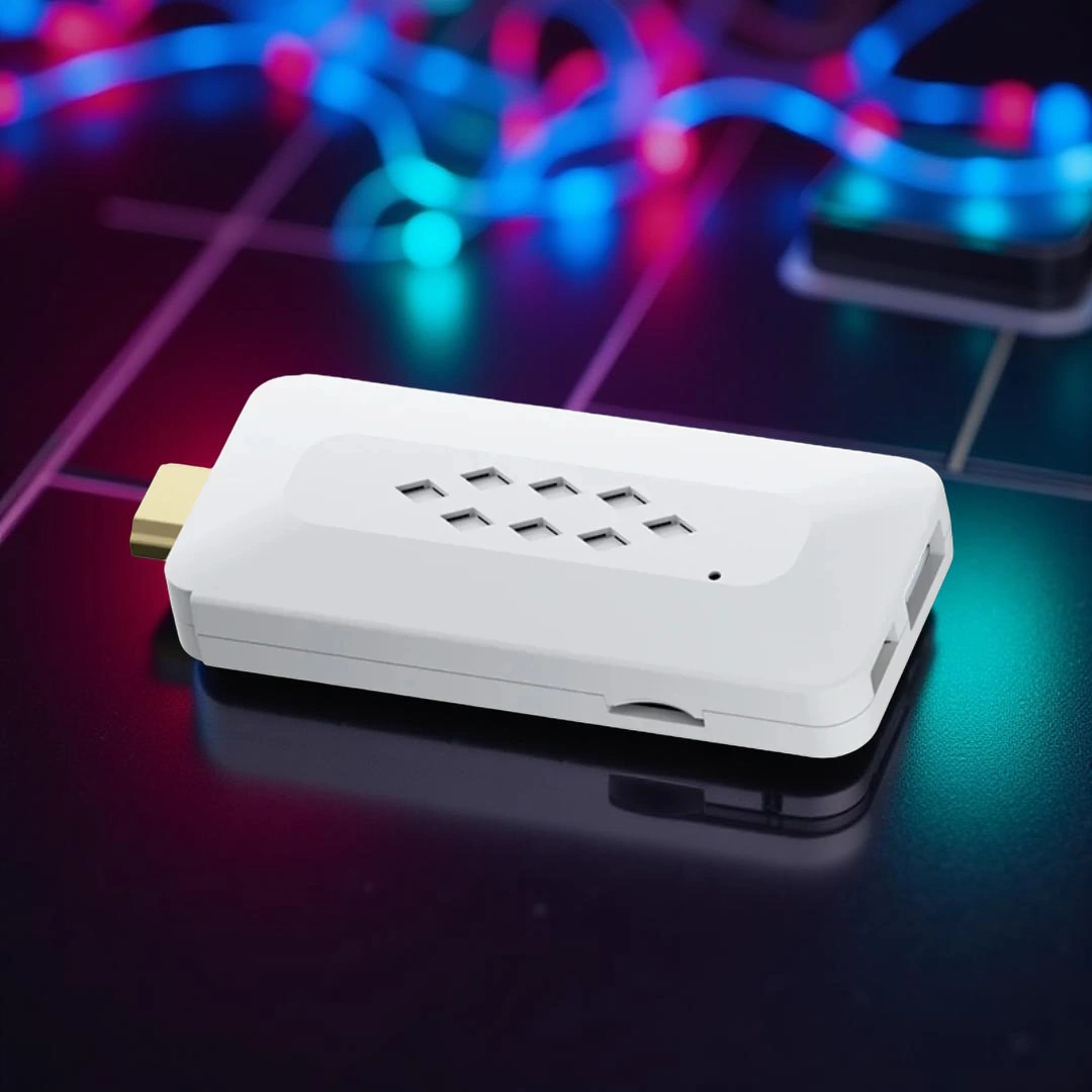 It is a modern and powerful gaming console designed to bring the classic games from your childhood back to life. Its size is similar to a USB flash drive, so it fits comfortably in your hand. Once connected, you will immediately find the most popular nostalgic games, allowing you to relive them once again—just like in the old days.
